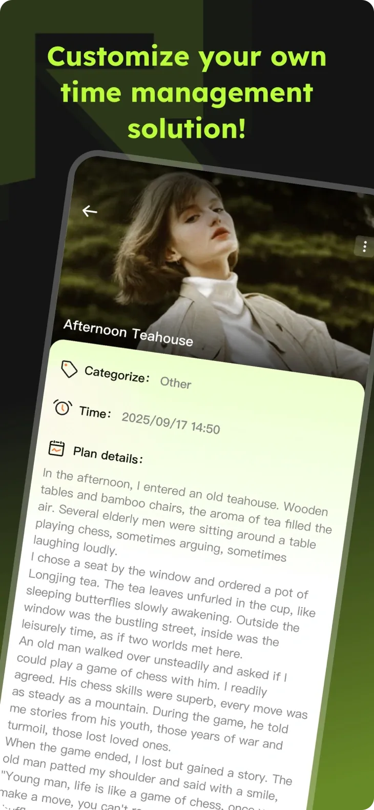 ReelFlow makes time management efficient and personal. Whether it's an urgent work project, an important study project, a weekend workout schedule, or a friend's party invitation, ReelFlow can help you handle it with ease.